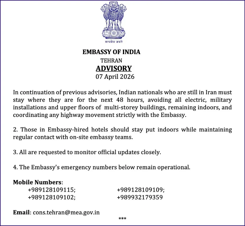 “আগামী ৪৮ ঘণ্টা যেখানে আছেন সেখানেই থাকুন”—এই সতর্কতা বর্তমান পরিস্থিতির গুরুত্ব স্পষ্ট করে দেয়। ইরান‑যুক্তরাষ্ট্র সংঘাতের মাঝখানে ভারত সরকার চায়, তাদের নাগরিকরা সর্বোচ্চ নিরাপত্তার মধ্যে থাকুন।