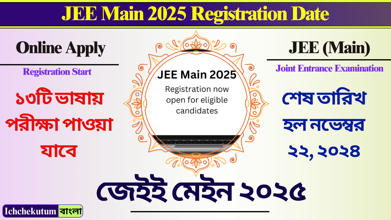 ▬ জেইই মেইন ২০২৫ সেশন ১ এর জন্য নিবন্ধন ২৮ অক্টোবর ২০২৪ তারিখে শুরু হয়েছে ।