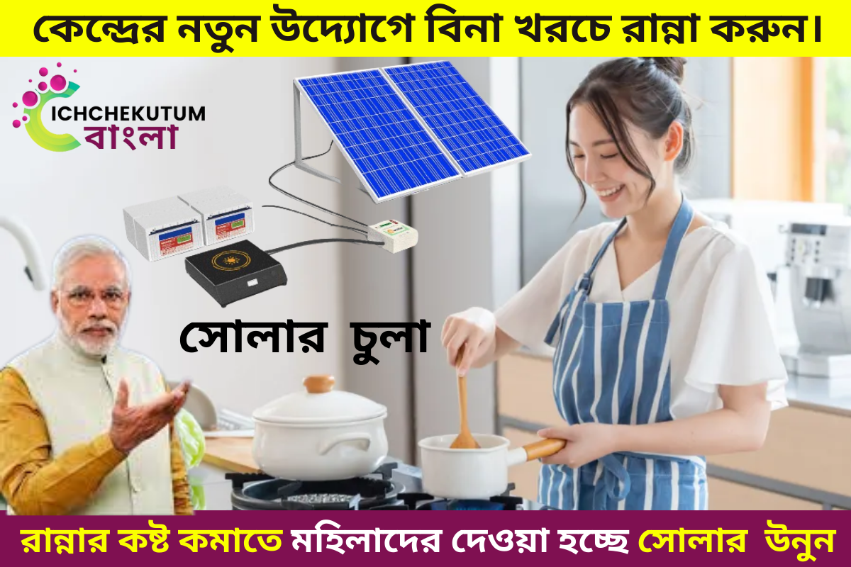 দেশের মহিলাদের সাহায্যের জন্য কেন্দ্র সরকারের পক্ষ থেকে সোলার উনুন বা চুলা ঘরে ঘরে দেওয়া হচ্ছে। তবে সর্ব প্রথম এই ধরণের উনুন এর জন্য বাড়ির ছাদে সোলার প্যানেল (Solar Cooking) লাগাতে হবে, কারণ সেই সোলার প্যানেলের মাধ্যমে সূর্য শক্তি থেকে শক্তি সংগ্রহ করে রাখা হবে। সূর্য শক্তি থেকে সংগ্রহ করা সেই শক্তি পাঠিয়ে দেওয়া হবে বাড়ির ভেতরের ওভেন এ। যার ফলে দেশের দেশের গৃহ বধূরা বিনা কষ্টে এবং খরচে রান্নার কাজ সেরে নিতে পারবে।